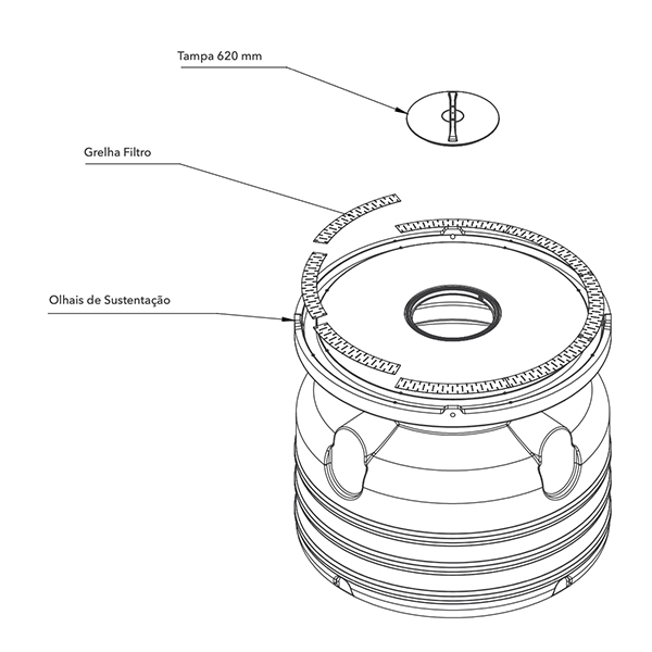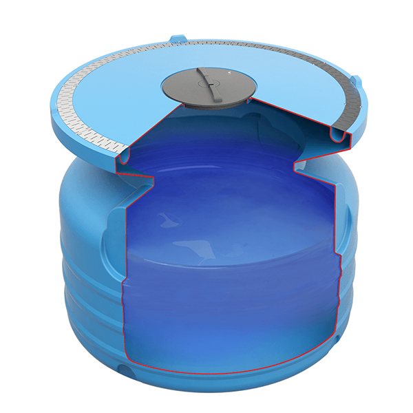 Estes reservatórios estão equipados com uma solução completa que inclui uma campânula para a recuperação e filtração das águas pluviais.